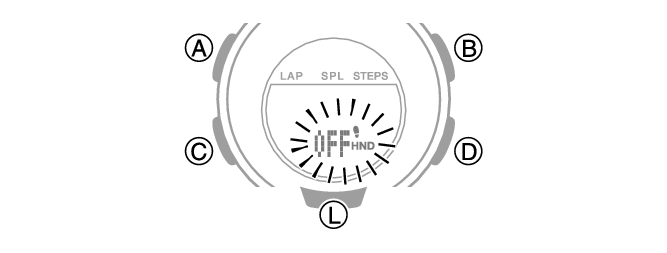 1.(A) düğmesini en az iki saniye basılı tutun. Adım Anımsatıcısı ayar ekranı görüntülendiğinde ([OFF] veya [ON] ifadesi yanıp söndüğünde) düğmeye basmayı bırakın.