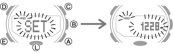 2.(D) düğmesini en az iki saniye basılı tutun. [SET] simgesi yanıp sönmeye başladığında düğmeye basmayı bırakırsanız bu simge ekrandan kaybolur.