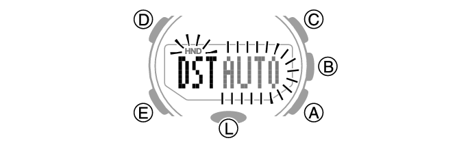3.Yaz saati ayarını değiştirmek için (D) düğmesini en az iki saniye boyunca basılı tutun. [AUTO], [OFF] ya da [ON] mesajı yanıp sönmeye başladığında düğmeye basmayı bırakın.