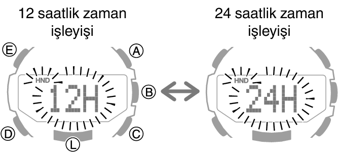 12 ve 24 saatlik Zaman İşleyiş Modu arasında geçiş yapma