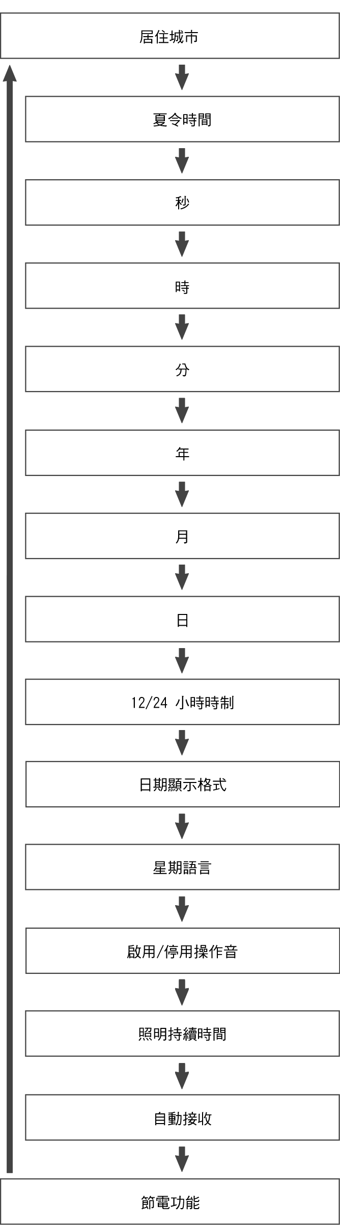 僅在手錶的居住城市位於可接收時間訊號的地區時,[AUTO] 夏令時間設定才會有效。