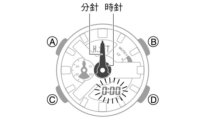 如果時針和分針未在 12 點鐘方向,請使用 (B) 和 (D) 將其校準。
