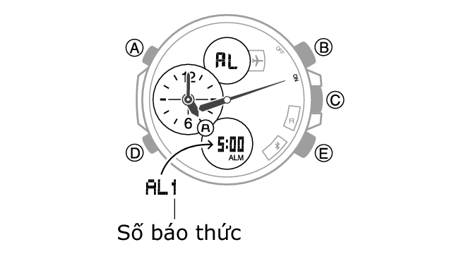 1.Nhấn (E) để cuộn qua các số báo thức cho đến khi hiện số báo thức mà bạn muốn cấu hình.