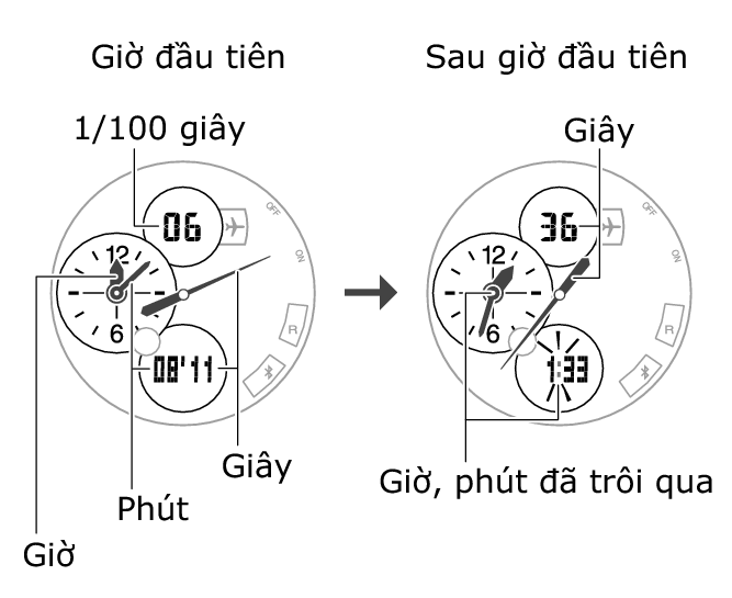 1.Sử dụng các thao tác dưới đây để đo thời gian đã trôi qua.