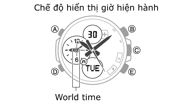 Thực hiện quy trình này trong Chế độ hiển thị giờ hiện hành. Sử dụng (D) để điều hướng sang Chế độ hiển thị giờ hiện hành.