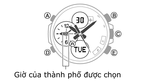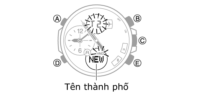 4.Nhấn (A) để quay lại Chế độ hiển thị giờ hiện hành.