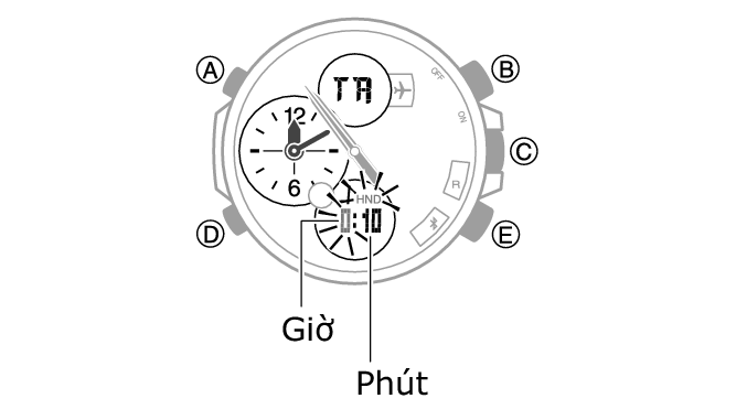 Nút (B) và (E): Thay đổi chữ số chỉ giờ và phút chớp sáng.