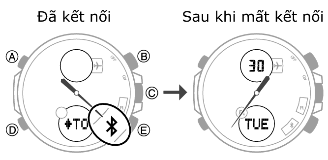 Nếu đồng hồ được kết nối với điện thoại, nhấn (C) để chấm dứt kết nối. -