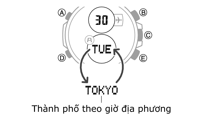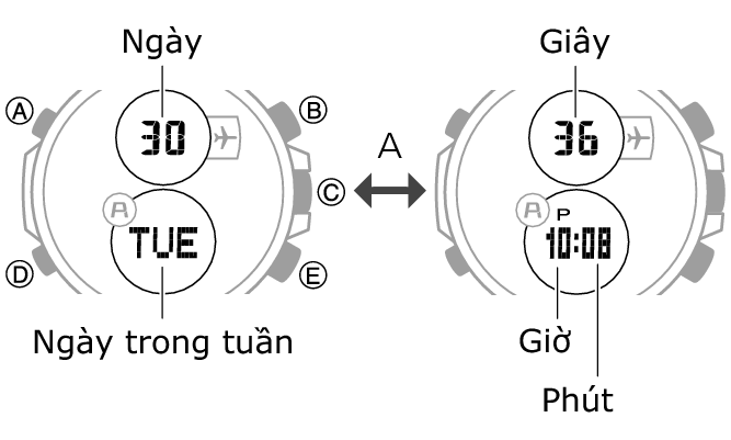 Ở Chế độ hiển thị giờ hiện hành, bạn có thể sử dụng thao tác dưới đây để thay đổi nội dung màn hình số.
