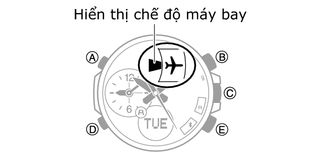 - Mỗi lần ấn giữ (D) trong khoảng năm giây, đồng hồ sẽ vào hoặc thoát khỏi Chế độ máy bay.