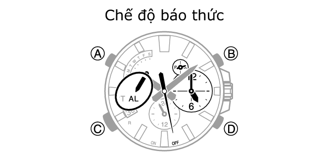 Thực hiện quy trình này ở Chế độ báo giờ. Sử dụng (A) để điều hướng đến Chế độ báo giờ.