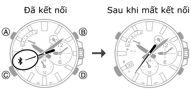 Nếu đồng hồ được kết nối với điện thoại, nhấn (C) để chấm dứt kết nối. -