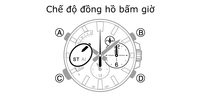 Thực hiện quy trình này trong Chế độ đồng hồ bấm giờ. Sử dụng (A) để điều hướng Chế độ đồng hồ bấm giờ.