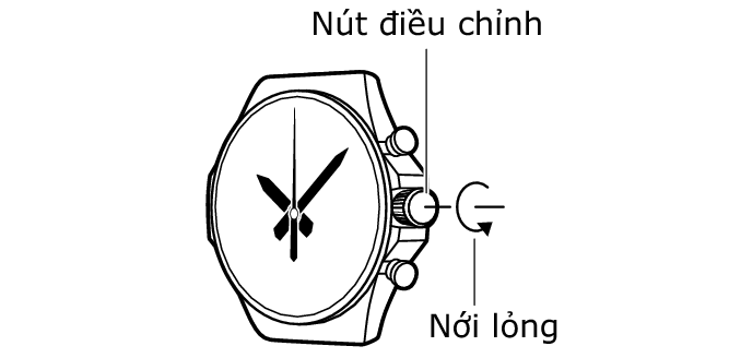 Núm vặn đồng hồ là kiểu vít vặn (khóa bằng vít). Để sử dụng núm vặn, trước hết bạn cần vặn núm về phía bạn (sang trái) để nới lỏng núm.