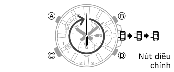 Điều này sẽ khiến kim giây thực hiện một vòng và đưa thiết đặt hiện hành về mặc định ban đầu.