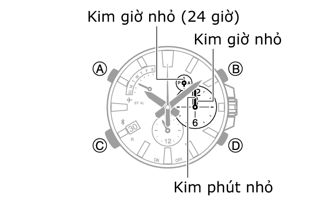 Điều này sẽ bật điều chỉnh căn chỉnh kim giờ nhỏ, kim phút nhỏ và kim giờ nhỏ (24 giờ).
