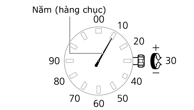 7.Xoay núm vặn để thay đổi chữ số hàng chục của năm.
