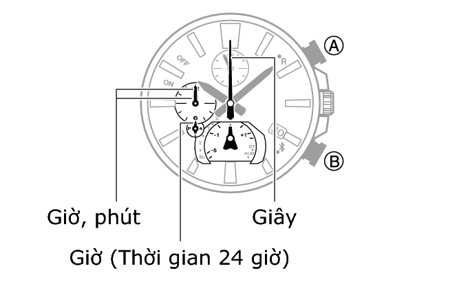 Khi đó, đồng hồ sẽ chuyển sang Chế độ đồng hồ bấm giờ và bắt đầu thao tác đo thời gian đã trôi qua.