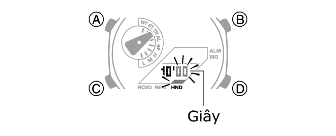 Sử dụng (B) và (D) để thay đổi cài đặt giây.
