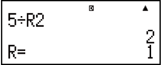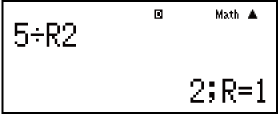 Ukwabela umphumela wensalela yesibalo sokuhlukanisa esimelini kuzokwabela inani le-quotient kuphela. Ukwenza isenzo esithi 5(÷R) 2(STO)(X) (esabela umphumela ka-5÷R2 ku-X) kuzokwabela inani lika-2 ku-X.